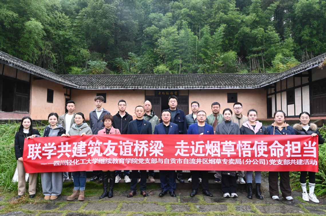 为深入贯彻中央八项规定精神学习教育,巩固前期学习教育成果,11月12日,四川轻化工大学继续教育学院党支部与自贡市自流井区烟草专卖局(分公司)党支部22名党员携手开展“联学共建筑友谊桥梁 走近烟草悟使命担当”联学共建主题党日活动,双方党员共聚一堂,在红色研学过程中感受担当与责任,在党建交流中凝聚奋进决心与力量。