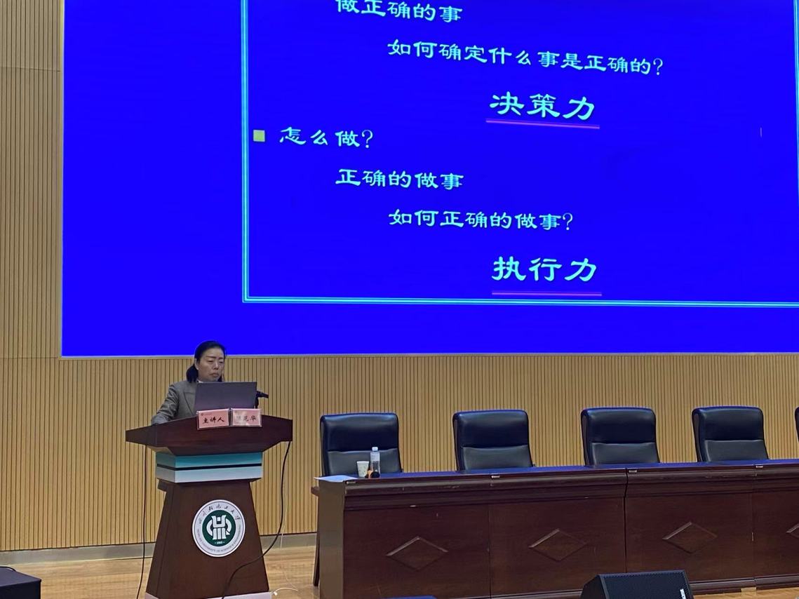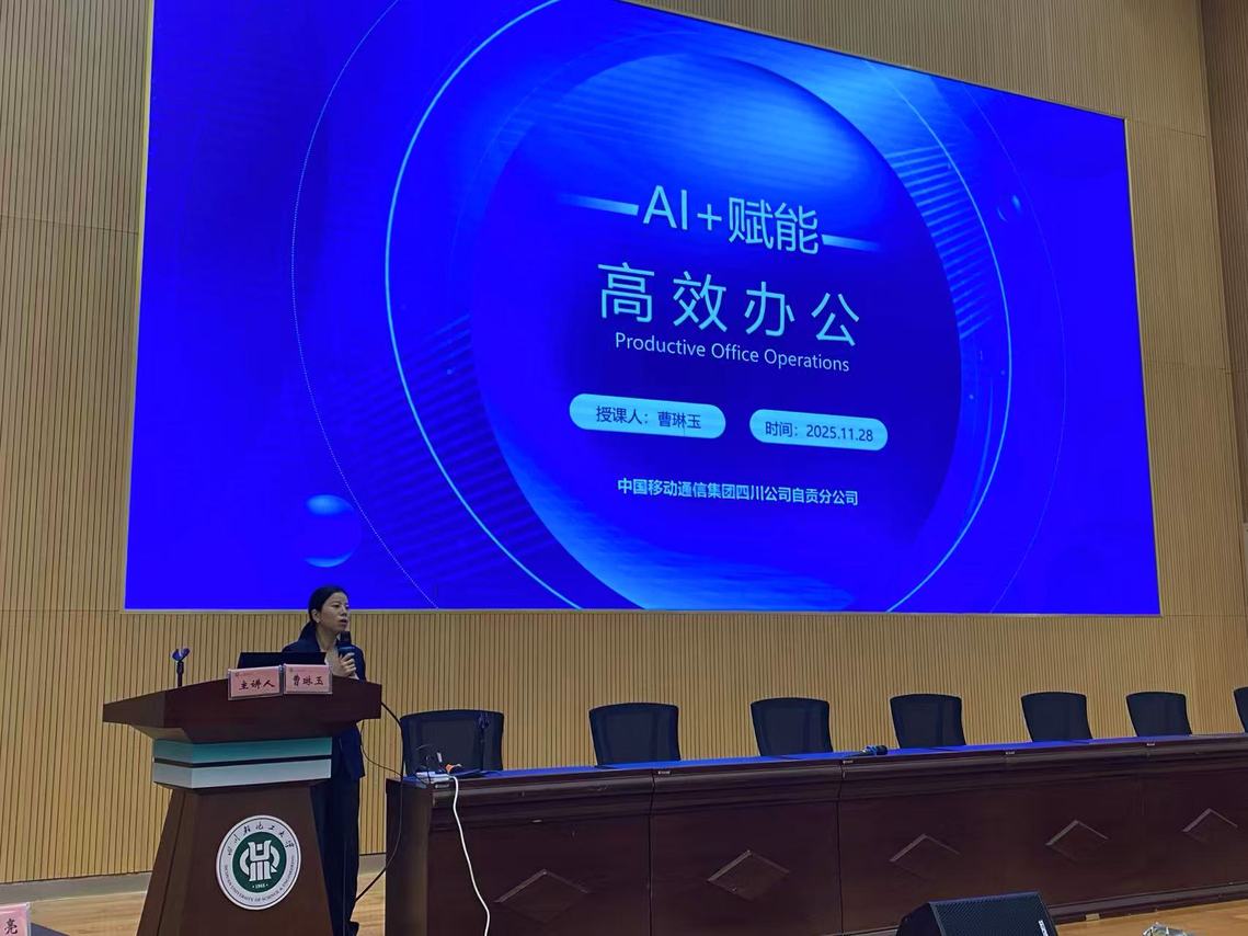 培训课程围绕“决策与执行力提升”“数智化办公应用”等主题展开,兼顾理论深度与实践指导。11月21日,学校党委副书记陈范华以《决策与执行力提升——构建制度执行力的思考》为题作首场专题讲座,深入剖析了科学决策的基础、前提、关键和核心,组织缺乏执行力的原因、提升组织执行力的原则和方法等。11月28日,中国移动通信集团四川公司自贡分公司省级专家曹琳玉开展《AI高效玩转数智办公》实操课程,帮助干部掌握智能化工具提升工作效率。此外,培训还设置了分组自学与专题讨论环节,推动学员在交流中深化理解、共享经验。